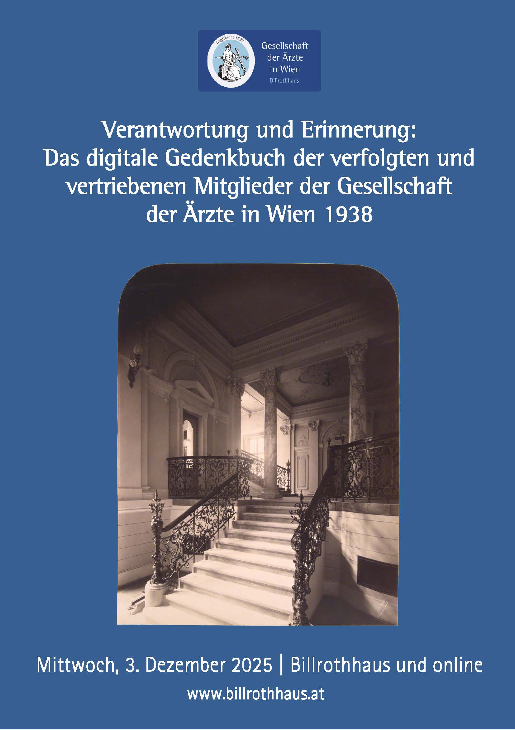 Wir möchten Sie sehr herzlich zur Veranstaltung „Verantwortung und Erinnerung: Das digitale Gedenkbuch der verfolgten und vertriebenen Mitglieder der Gesellschaft der Ärzte in Wien 1938“ am 03.12.2025 im Billrothhaus einladen!