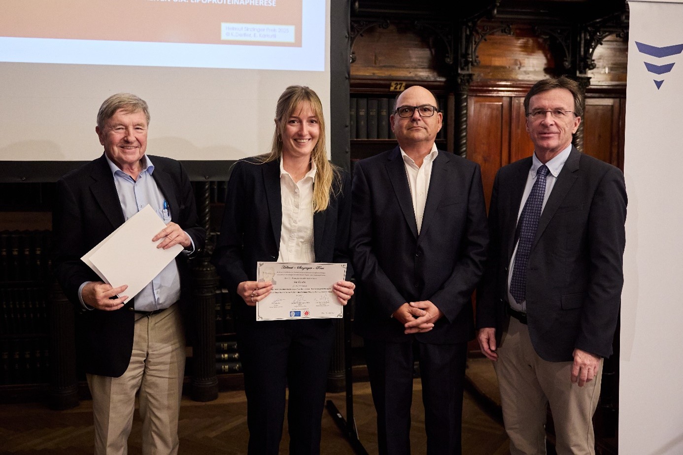 Am 15. Oktober 2025 verliehen die Gesellschaft der Ärzte in Wien und die Austrian Apheresis Association zum vierten Mal den Helmut-Sinzinger-Preis. Den ersten Platz erreichte Florentina Porsch, PhD (Klinisches Institut für Labormedizin, MedUni Wien) mit ihrer Publikation "TREM2 protects from atherosclerosis by limiting necrotic core formation".